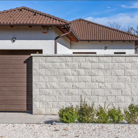 Az Architektura kerítéskő egy ház takaros kerete és névjegykártyája. A hasított felület és és azzal összhangban álló színválaszték biztosítja a ház és kerítés közötti harmonikus összhatást.